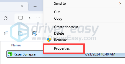 - Right-click your Razer Synapse icon and select Properties.