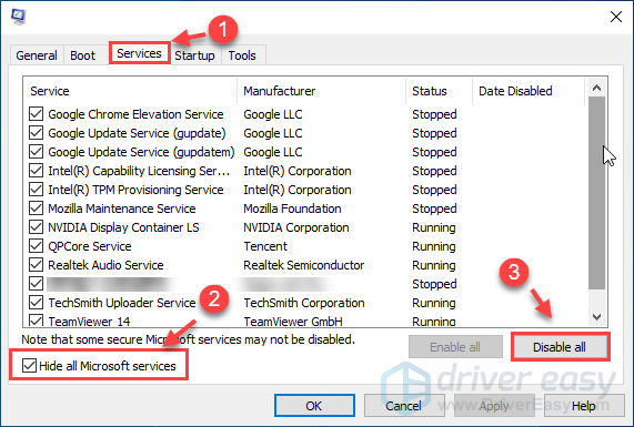- Enable the service one by one (restart your PC and test the issue after enabling each service or start-up) until you find the problematic one.