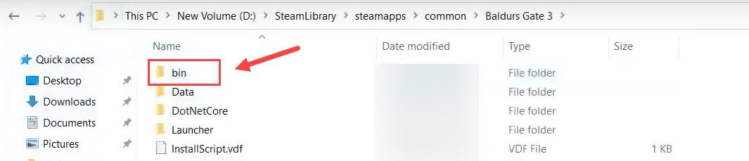 - Navigate to the folder steam\steamapps\common\Baldur’s Gate 3\bin.