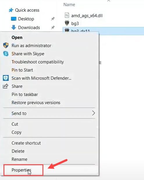 - Right-click bg3.exe for Vulkan, or bg3_dx11.exe for DX11, and select Properties.