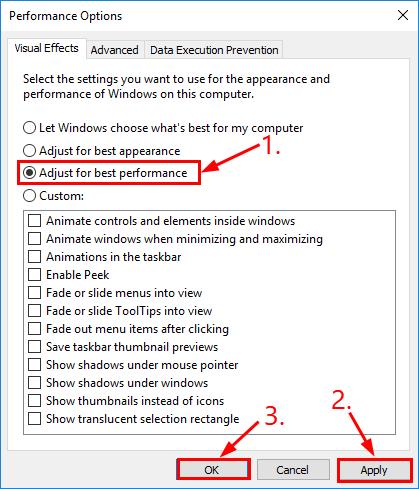 - Click Adjust for best performance > Apply > OK.
