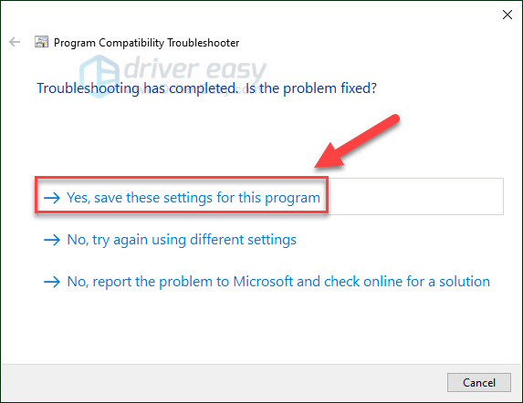 5) Click Yes, save these settings for this program.