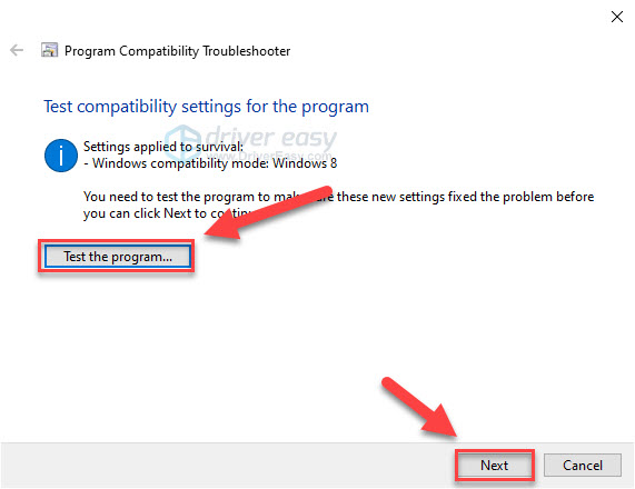 4) Click on Test the program, then click Next.