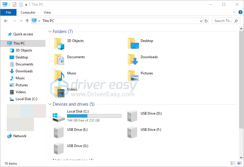 5) On your keyboard, press the Windows logo key and E at the same time.