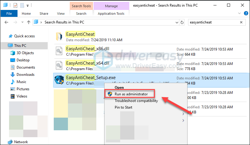 3) Right-click EasyAntiCheat_Setup.exe, and then select Run as administrator.