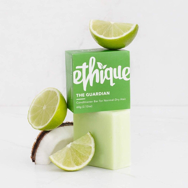 A plant-based, solid conditioner bar can give you all the healthy hair benefits without you ever having to hit the — single-use disposable plastic — bottle. All ingredients in this conditioner bar are made from natural, ethically sourced, sustainable, and effective ingredients. Since the Guardian delivers the same amount of conditioner as 5 liquid bottles, it cuts down on water consumption too.
