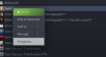 - In the LIBRARY, right-click on Satisfactory and select Properties from the drop-down menu.