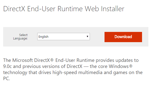2) For DirectX 10, 11 and 12, they are built in Windows systems (Windows 7, 8 and 10), and there is no standalone download file. They can only be updated with Windows Update.