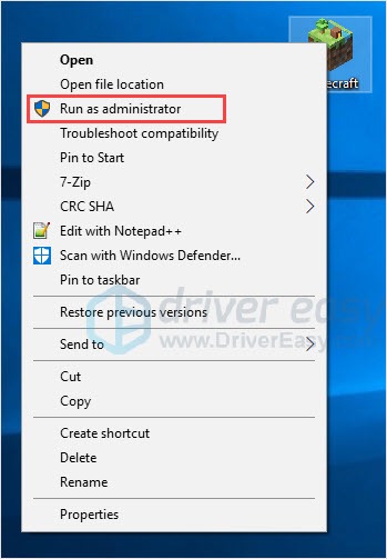 HOW: Right-click on Minecraft and choose Run as administrator.