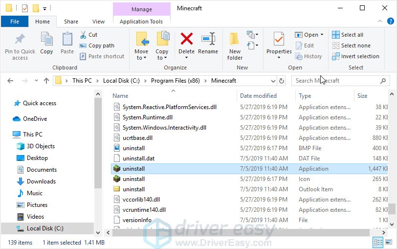 1. Navigate to C:\Program Files (x86)\Minecraft.