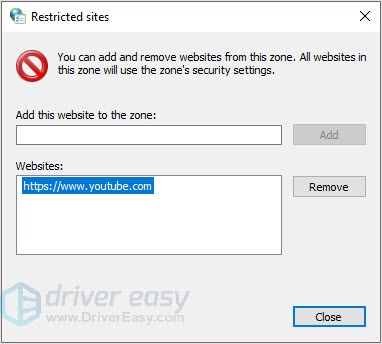 5) If the website you want to access is on the list, you can select it and click Remove. Then click OK to finish setting.