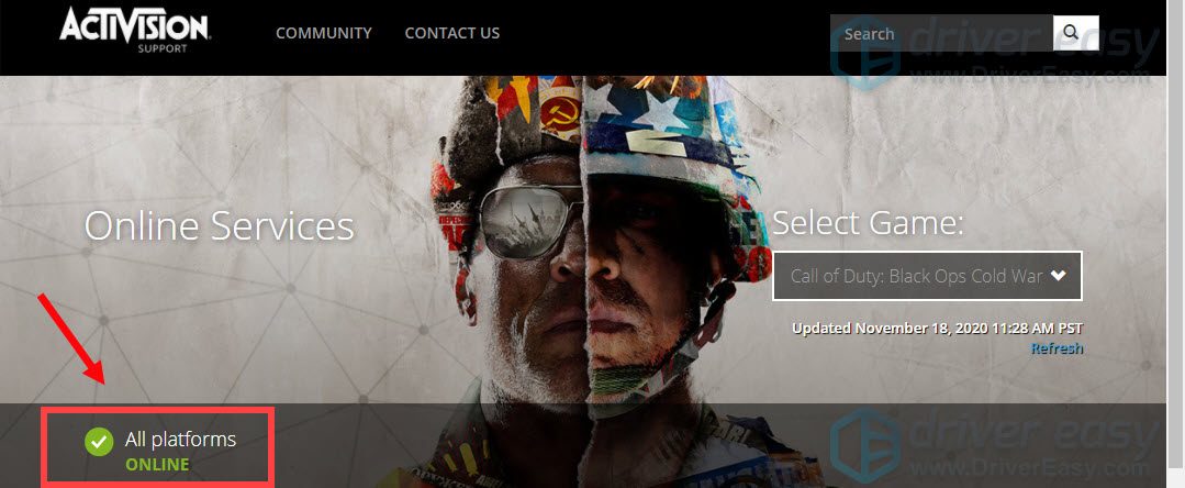 Game servers may sometimes go down and you cannot connect to online services. To check if that’s your case, visit the Activision Online Services page. Once you go there, take these steps: