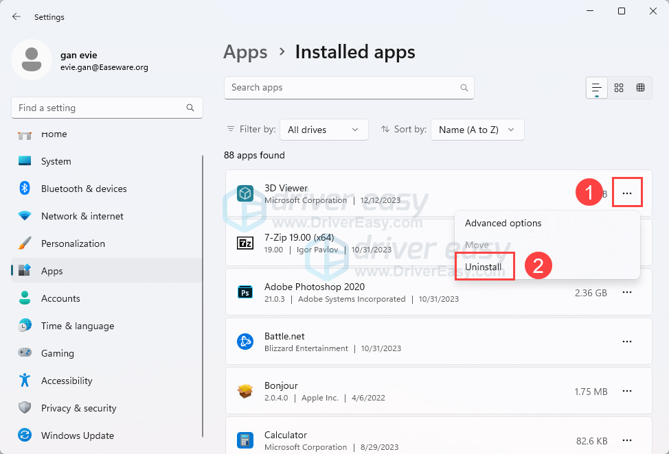 If updating apps doesn’t solve your flickering issues, consider uninstalling the recently installed apps, as they may not be compatible with Windows 11 and can cause a flickering screen. To uninstall an app: