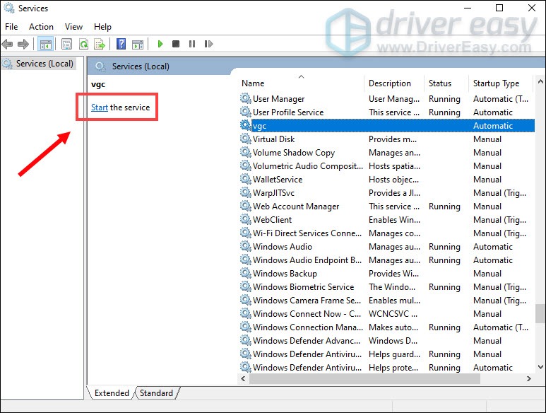After rebooting your computer, play your game to check if your problem is resolved. If that didn’t work, you need to change vgc startup type.