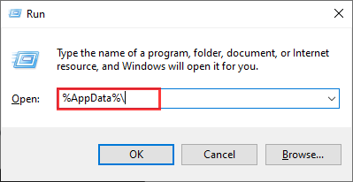 - On your keyboard, press the Windows logo key and R at the same time, then type %AppData%\ and press Enter.