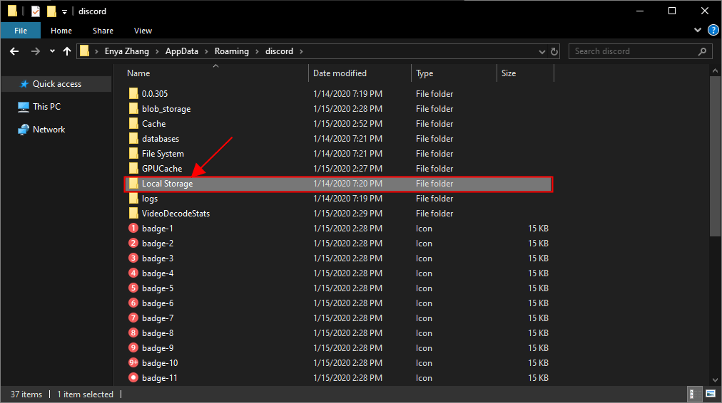 - Go back to the Discord folder, and double click on Local Storage folder.