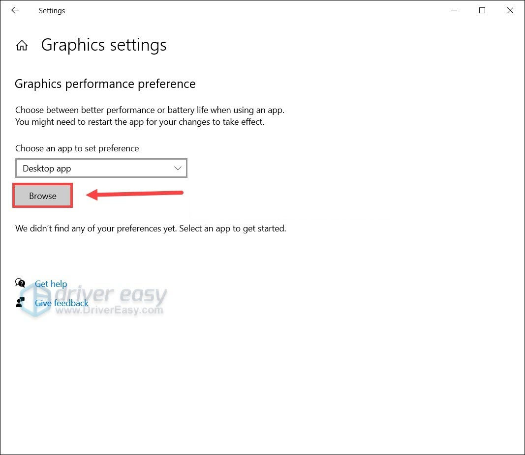 - You’ll see three graphics preference. Select the AMD one and click Save.