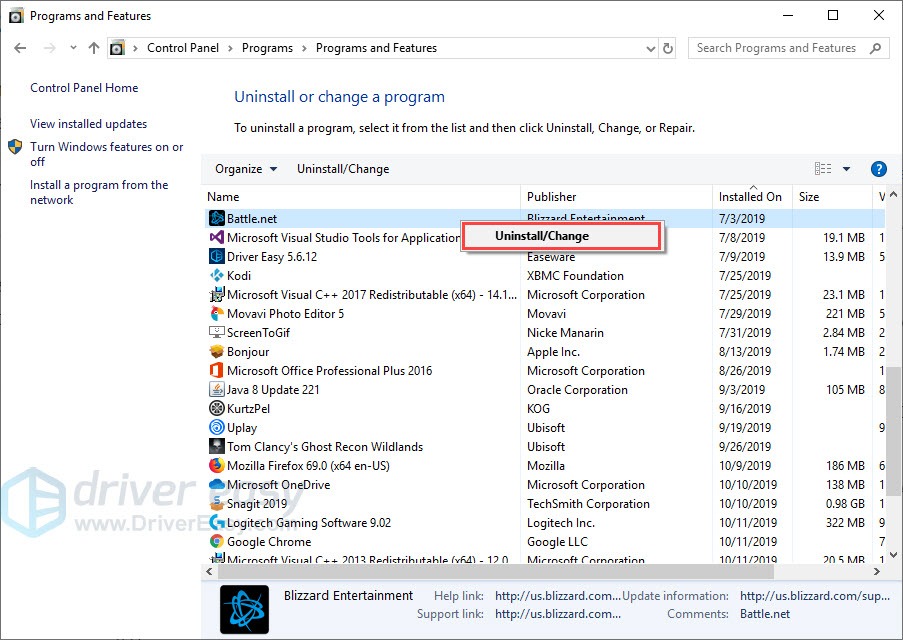 Uninstall software: In the steps below, we use the Battle.net as an example to demonstrate how to uninstall software safely. You can follow the steps to uninstall the newly installed software on your computer.