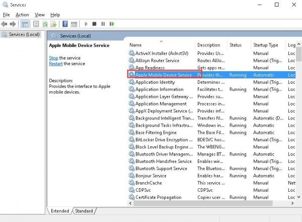 4: Restart Apple Mobile Device Support and Service