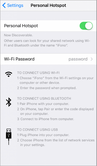 If you’re connecting for the first time, you’ll need to enter the password you assigned to your Personal Hotspot.