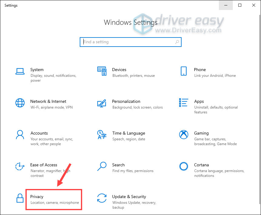 - Select Privacy.