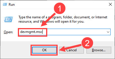 - Type devmgmt.msc in the field and click OK.