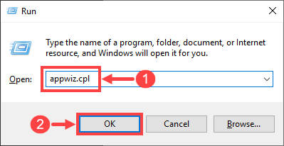 and R at the same time to invoke the Run dialog box. Type in appwiz.cpl and click Yes.