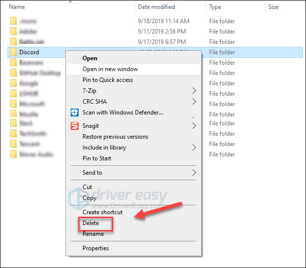 3) Right-click Discord, then select Delete.