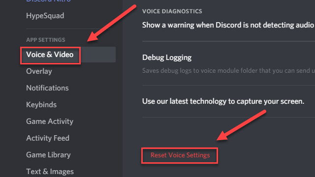 2) Click Voice & Video, then Reset Voice Settings.
