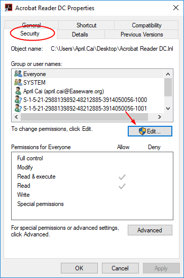 Your Windows account should have the full control of Acrobat Reader to enjoy the app’s advanced feature or even the basic ones. When you see 0xc0000022 error, check the permission setting of Reader: