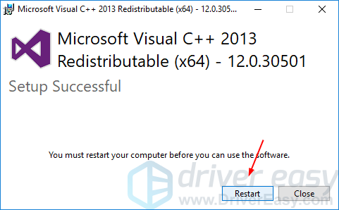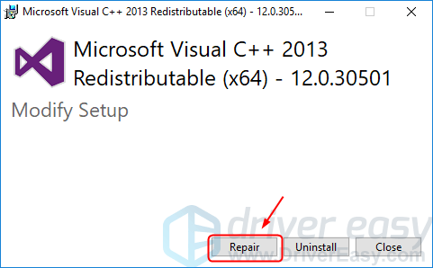 If unfortunately, repairing the Redistributable doesn’t solve your problem, please go on to reinstall it: