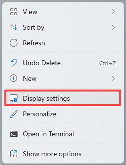 1) Right-click on any empty space on the desktop and select Display settings.