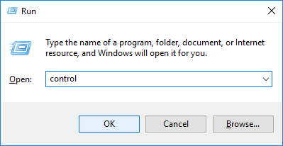 - On your keyboard, press the Windows logo key and R at the same time to open the Run dialog. Then type control and press Enter to open the Control Panel.