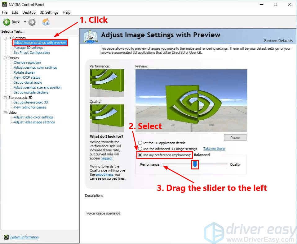 Modifying your graphics card settings is another essential step in resolving Fortnite FPS drop issue. Just follow the steps below to modify your graphics card settings: