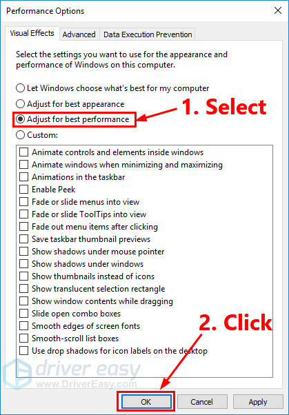 Fortnite FPS drop issue is also probably caused by the power plan of your PC. Most PC are configured to Balanced, which limits the operating capacity of your graphics card and CPU. So, Fortnite FPS drop issue may occur. Follow the instructions below to change the power plan of your PC and adjust your Windows system for the best performance: