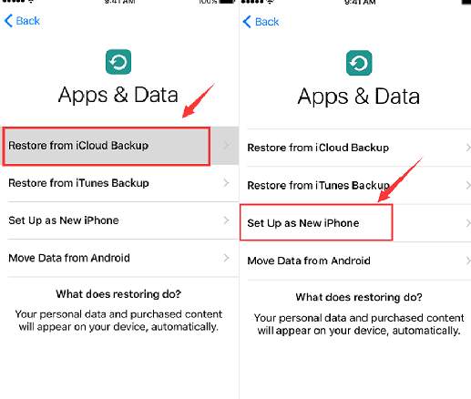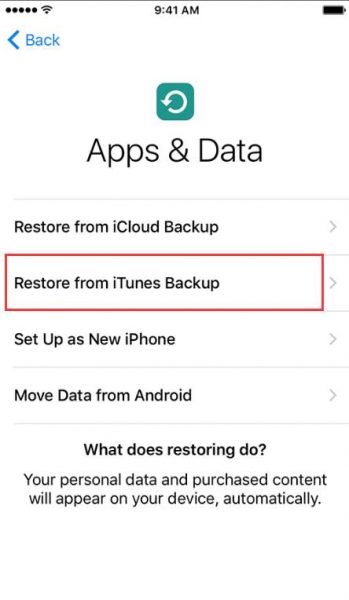 7) When you reach the following screen, tap Restore from iTunes backup.