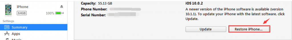 5) Please be patient and only proceed until the backup complete. When the backup complete, click Restore iPhone… option.