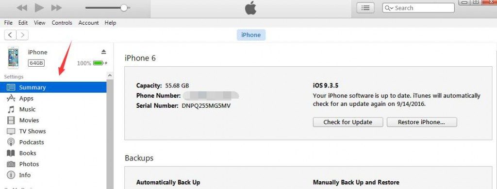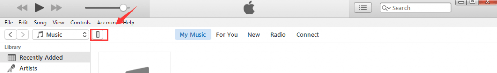 2) Connect your iPhone to your computer with USB cable. You will be able to see an icon appearing as your iPhone in the upper left corner of the iTunes window.