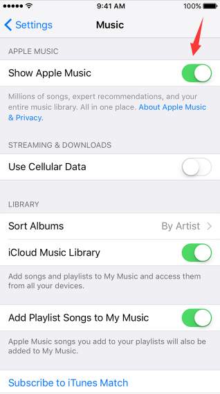 5) Turn on iCloud Music Library.