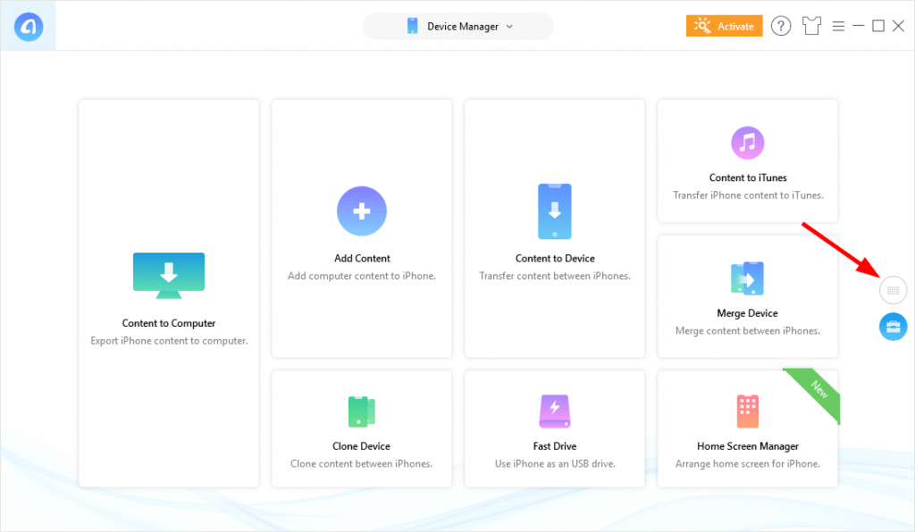 3) Run AnyTrans, then click the categories button.
